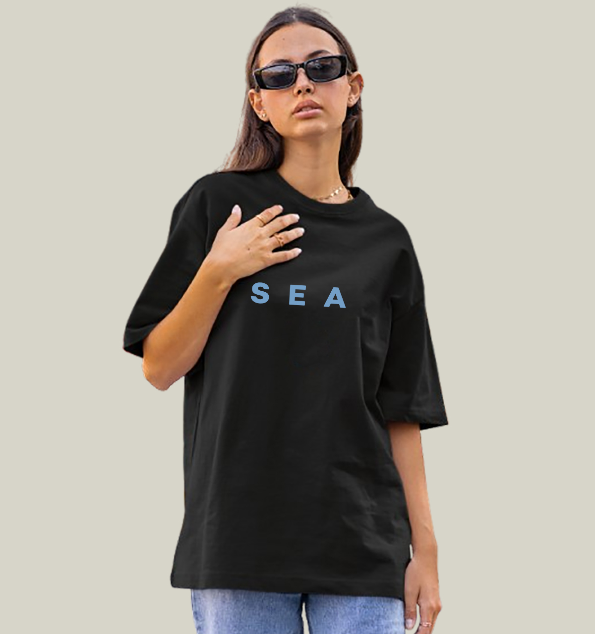 Camiseta Oversized Feminina Preta Algodão Premium WSS Sea